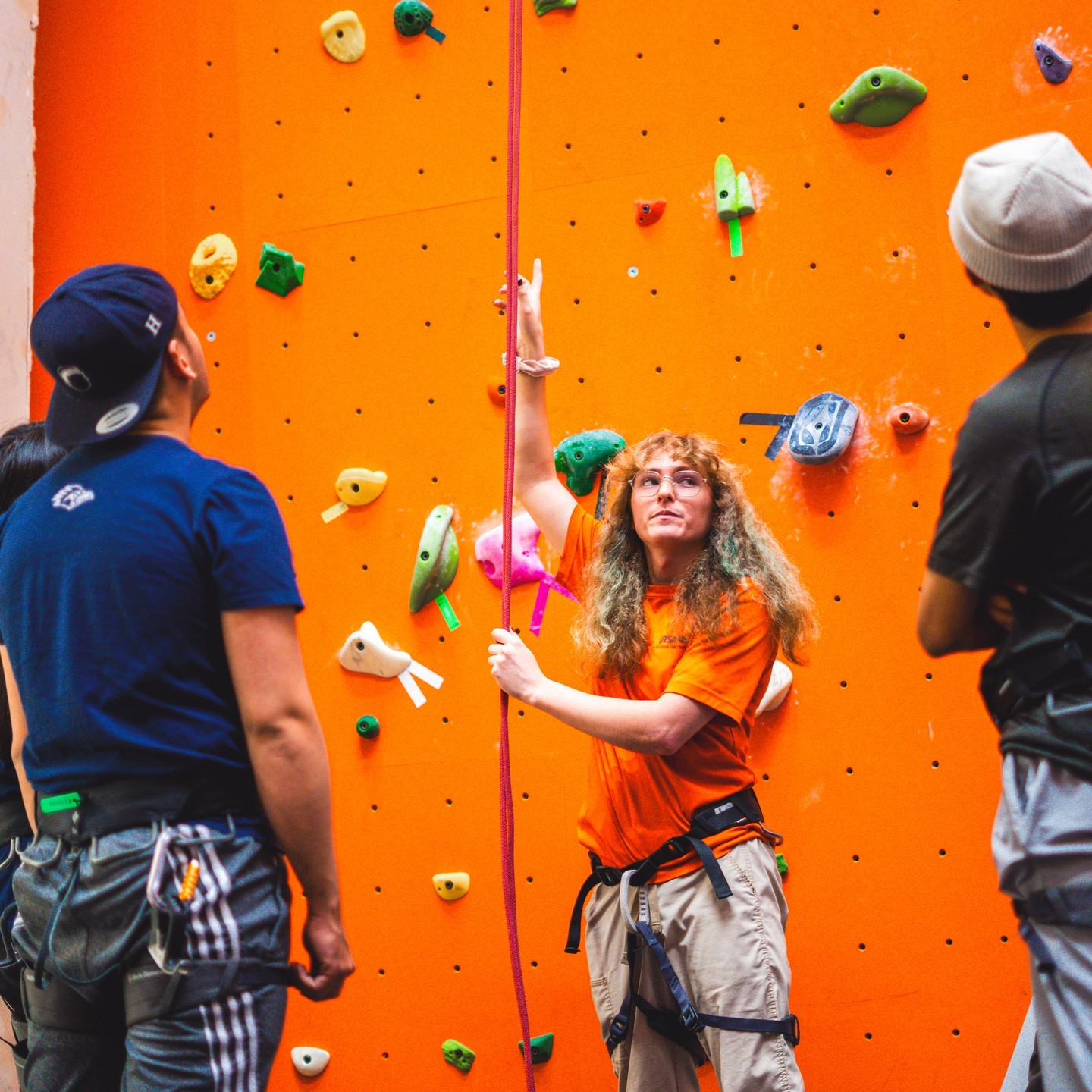 Die UTSA-Kletterwand ist frei für Studenten. Die Wand ist vierundfünfzig Fuß hoch. Du kannst Klettern üben und auch kannst lernen zu Sichern. Auch du kannst dem Kletterklub beitreten, die Menschen dort sind nett.